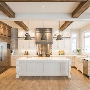 Kitchen - Carrera Grigio (Quartz) / Live Edge (Wood top)